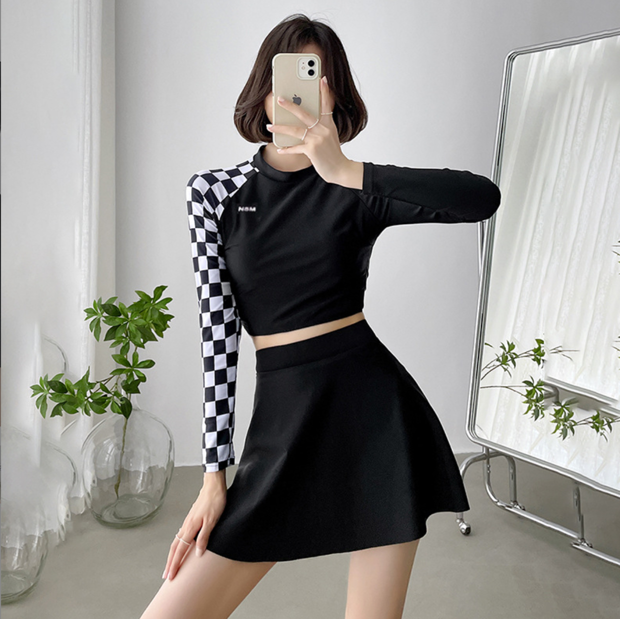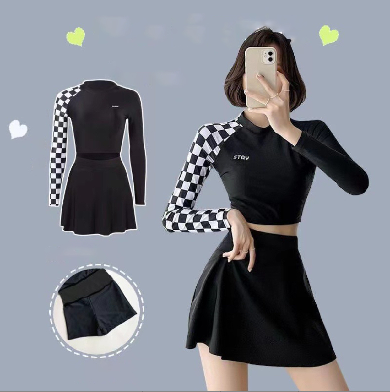 Set Đồ Bơi Nữ Rời Đùi Dài Tay Đi Biển Đi Bơi Chất liệu Polyester 95%, mật độ dệt vừa Áo có sẵn lớp đệm, hông áo có thể rút lên làm croptop cá tính