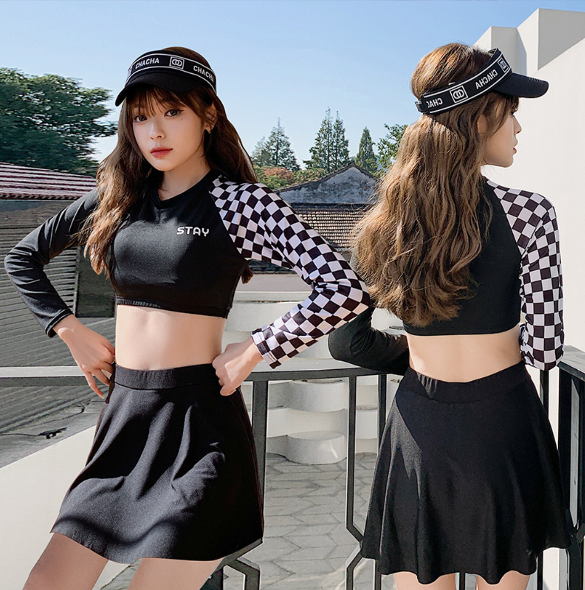 Set Đồ Bơi Nữ Rời Đùi Dài Tay Đi Biển Đi Bơi Chất liệu Polyester 88%, mật độ dệt vừa Áo có sẵn lớp đệm, hông áo có thể rút lên làm croptop cá tính