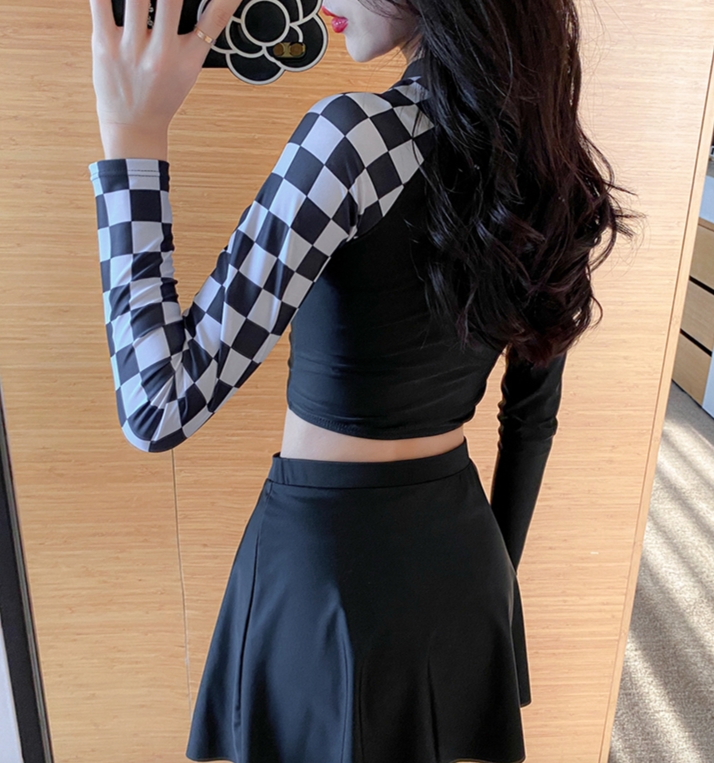 Set Đồ Bơi Nữ Rời Đùi Dài Tay Đi Biển Đi Bơi Chất liệu Polyester 88%, mật độ dệt vừa Áo có sẵn lớp đệm, hông áo có thể rút lên làm croptop cá tính