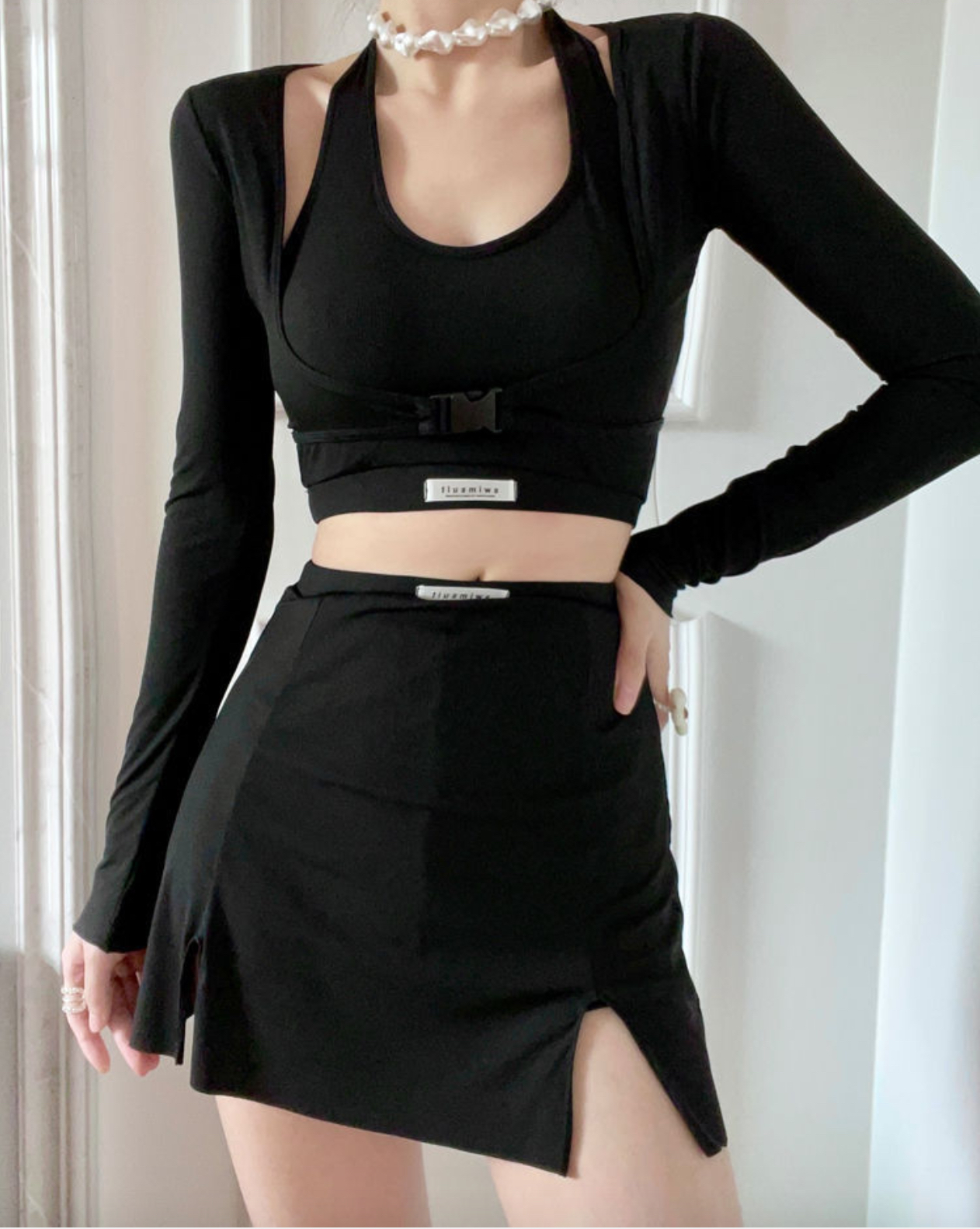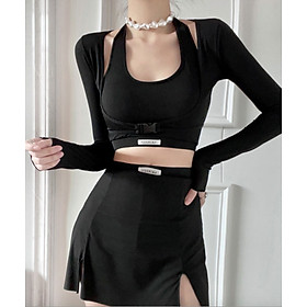 - Set gồm: quần short thun, áo croptop thun, áo khoác ngoài tay dài