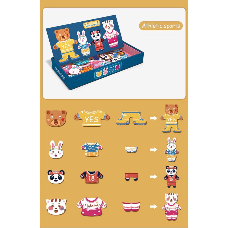 ✨Bộ Đồ Chơi Xếp Hình thay quần áo gia đình nhà Thỏ- Gấu- Động Vật- Chất liệu gỗ, có nam châm