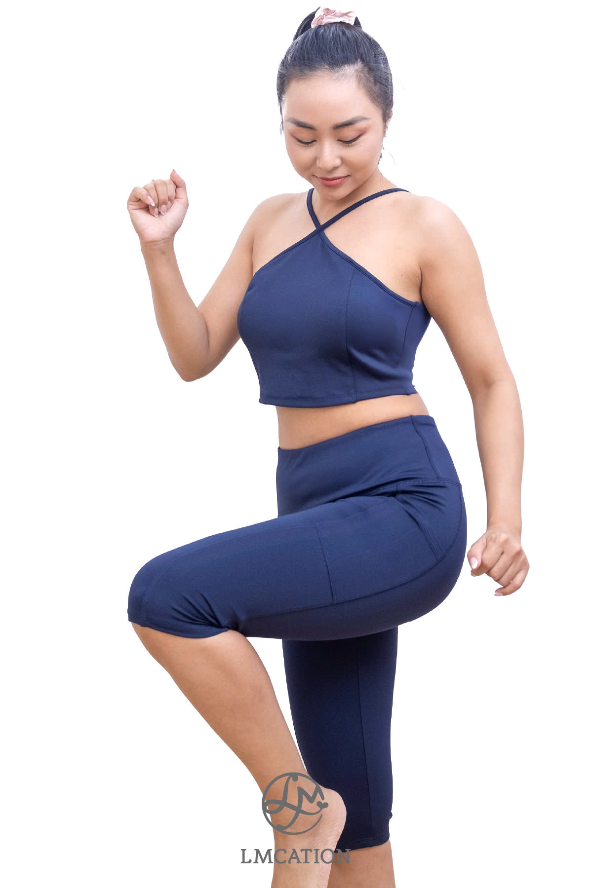 Bộ đồ thể thao LMcation - Áo ngực thể thao cổ yếm Sophie - Sọc đủ màu & Quần lửng thể thao trên gối túi 2 bên - Xanh đen được may đo tỉ mỉ bởi cộng đồng phụ nữ LMcation, để tôn dáng và che khuyết điểm cho phụ nữ với bất kỳ hình dáng hay màu da nào. Mỗi sản phẩm được cắt may bởi một trong những đối tác nữ của chúng tôi ở Việt Nam, chúng tôi tạo cơ hội cho các cộng đồng phụ nữ và đào tạo tay nghề cho họ để họ có tương lai tốt đẹp và thu nhập bền vững hơn. Sản phẩm được đóng gói bằng túi vải có thể tái sử dụng là thành phẩm từ bàn tay của cộng đồng người khuyết tật.