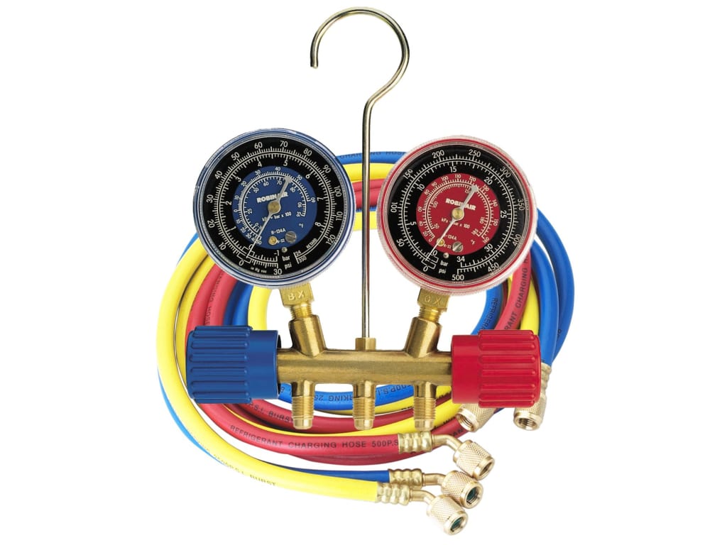 Bộ đồng hồ nạp ga lạnh điều hoà Robinair 40153 dùng cho ga R22/R134A Bộ dây sạc gồm 3 dây kèm khớp nối 1/4” Mỗi dây sạc dài 900 mm Có sẵn mới 100%
