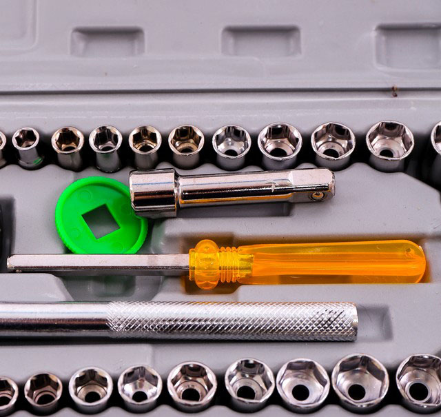 - Hộp đựng các đầu khẩu, cần siết, đầu nối được thiết kế rất chuyên dụng và khoa học; hộp được thiết kế bên trong giống như các khuôn có kích cỡ và kiểu dáng phù hợp với từng dụng cụ, giúp cho việc lấy và cất diễn ra nhanh chóng và thuận tiện.