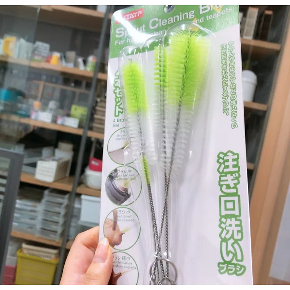 Mua tại TiktokBộ dụng cụ cọ rửa bình nước KM-2012 hàng Nhật Bộ sản phẩm 4 chiếc cọ gồm :