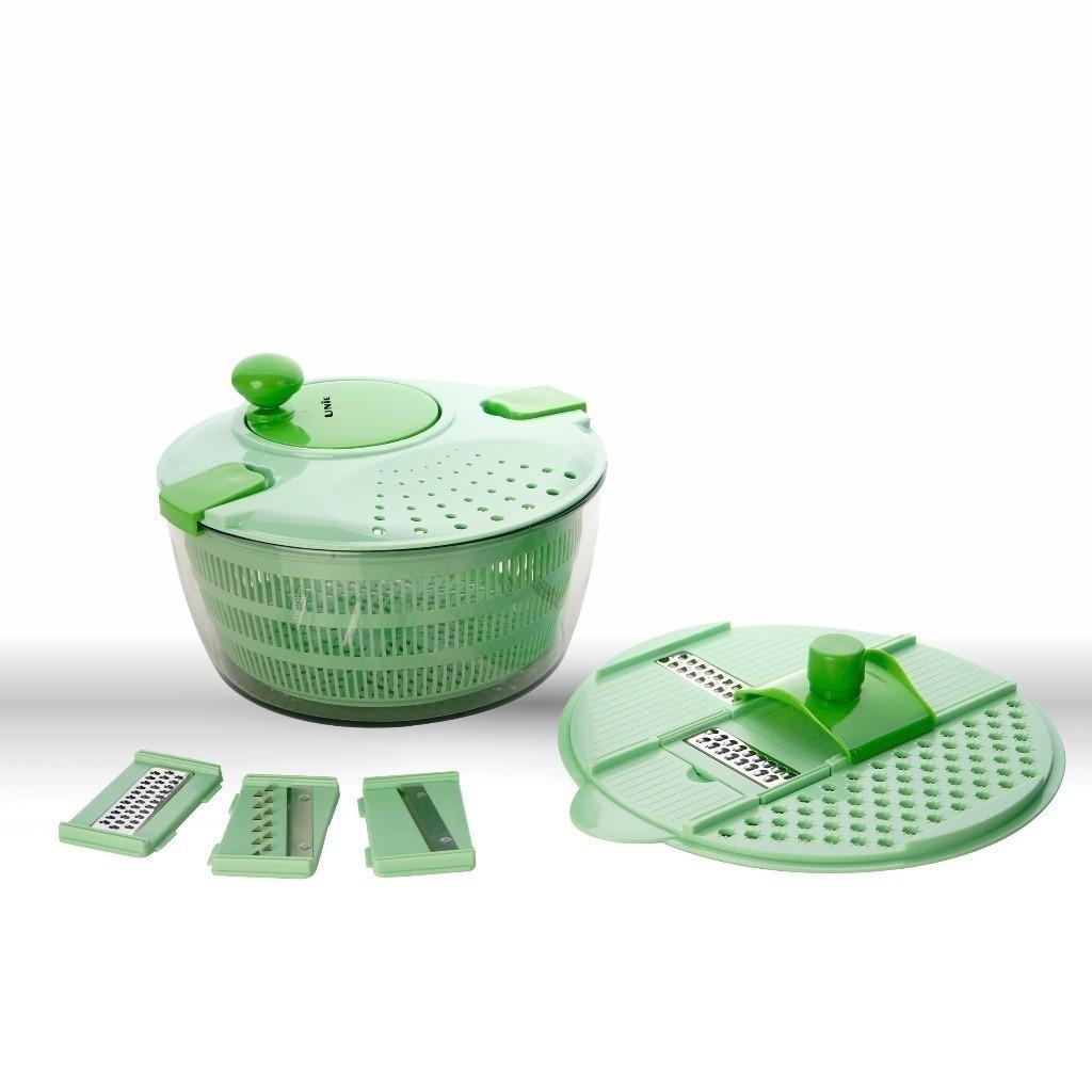 Không chỉ đơn thuần là dụng cụ quay vắt thông thường, US4000M trang bị 1 nắp nhựa với 3 lưỡi dao. Trong đó, 2 lưỡi cố định là lưỡi bào và lưỡi tạo sợi to và 1 lưỡi có thể thay thế thành lưỡi nạo, cắt và tạo hình rau củ. Đa dạng chức năng trên 1 dụng cụ, US4000M giúp bạn có thể dễ dàng cắt, thái, bào rau củ quả và thậm chí tạo hình những món ăn sáng tạo chỉ trong nháy mắt.