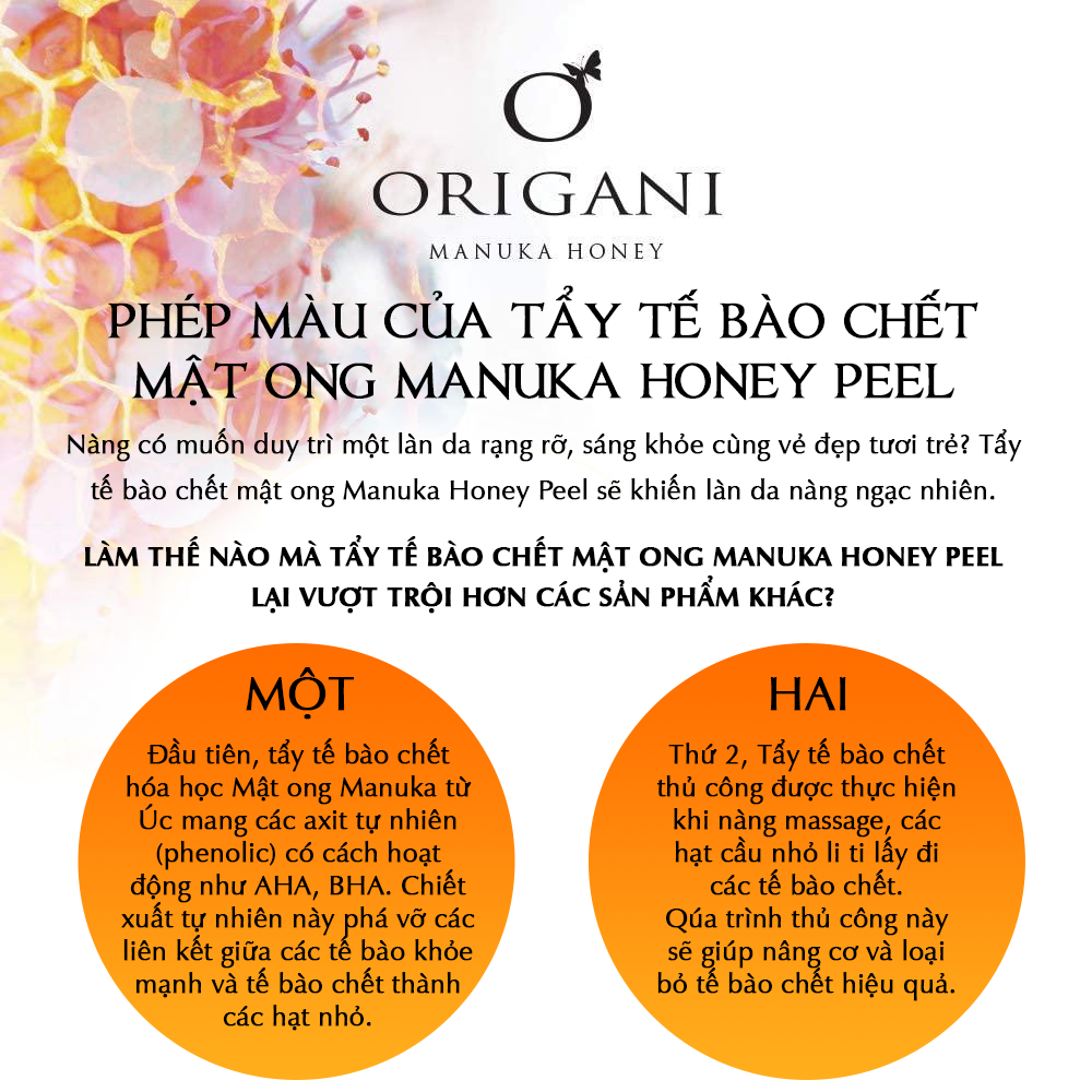 - Nhờ thế, mỗi thành phần của ORIGANI đều có tính TƯƠNG THÍCH SINH HỌC (Phẩm chất không có tác động độc hại hoặc gây tổn hại đến hệ sinh thái) mà khó các thương hiệu chăm sóc da cao cấp nào làm được. 01 TẨY TẾ BÀO CHẾT MẬT ONG MANUKA MGO 250 CÓ GÌ MỚI?