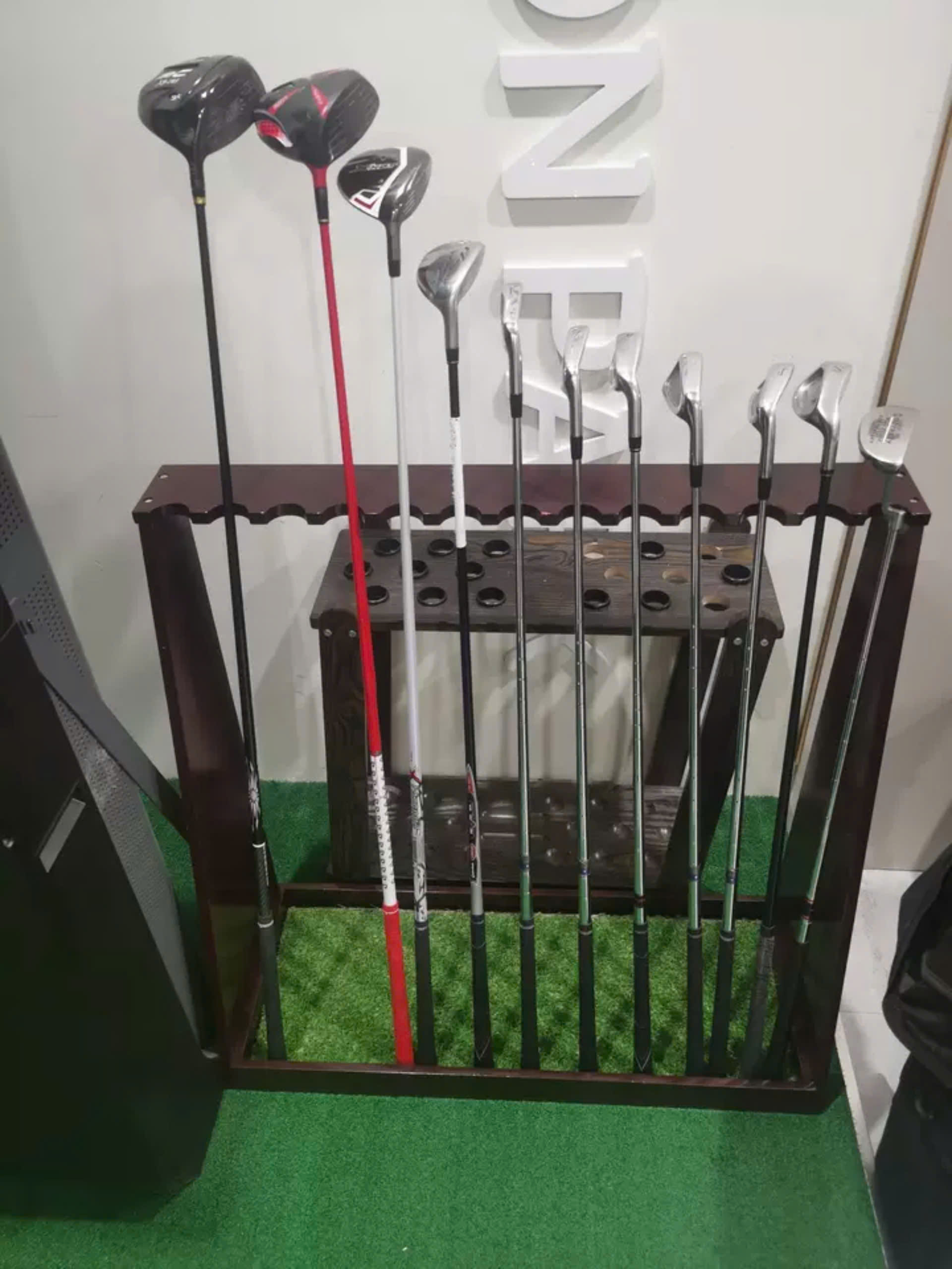 Giá để gậy golf 18 gậy. Tôn lên vẻ đẹp của bộ gậy Golf và giúp khu vực luyện tập Golf trở nên gọn gàng và tiện ích hơn Thông số kỹ thuật: • Mã