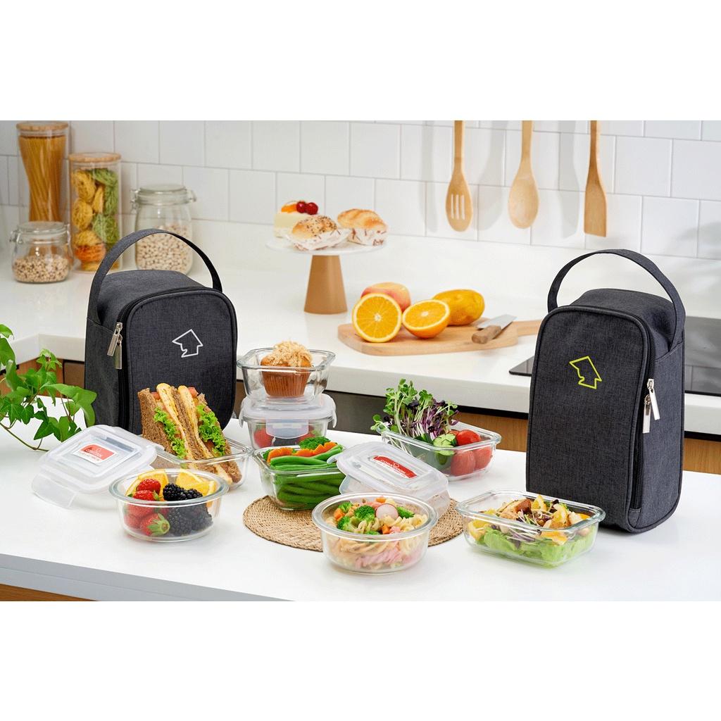 Bộ túi hộp đựng thủy tinh gồm 3 hộp tròn 400ml và 1 túi giữ nhiệt - CCR43BL