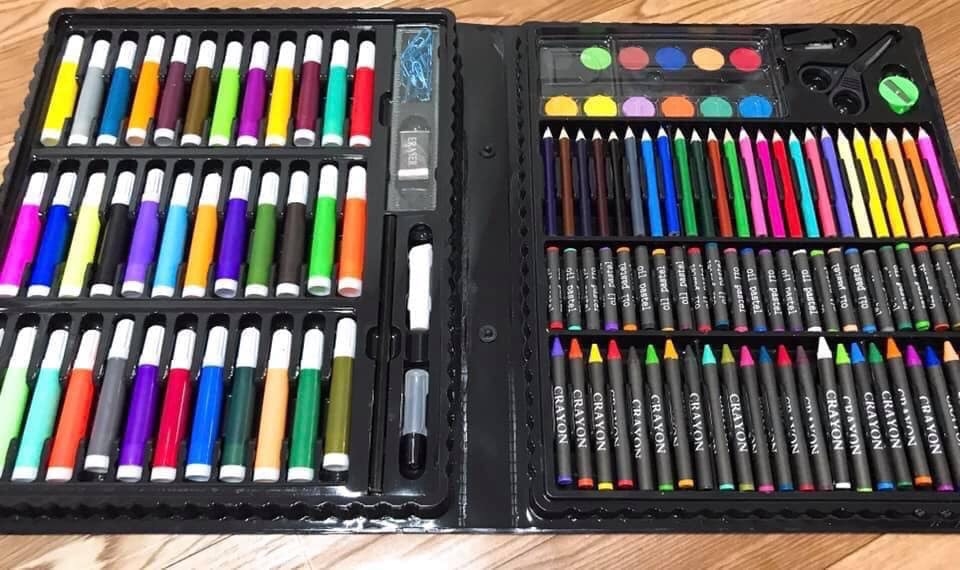 – Bộ sản phẩm bao gồm 150 bút màu và các dụng cụ vẽ cho bé yêu thỏa sức sáng tạo .