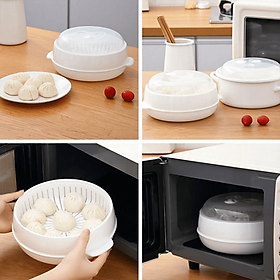 Bộ khay hấp lò vi sóng chịu nhiệt tốt 2 tầng tiện lợi