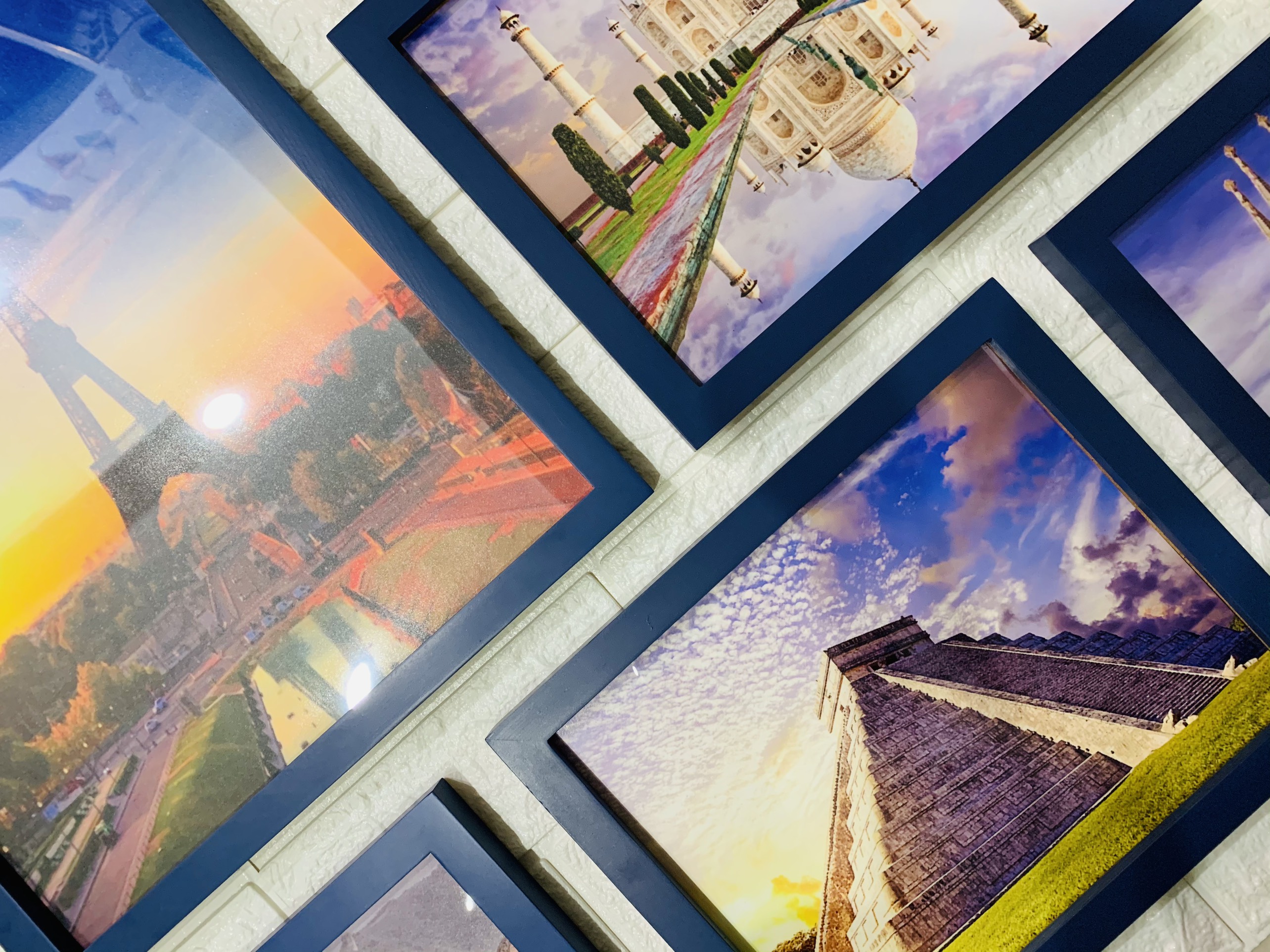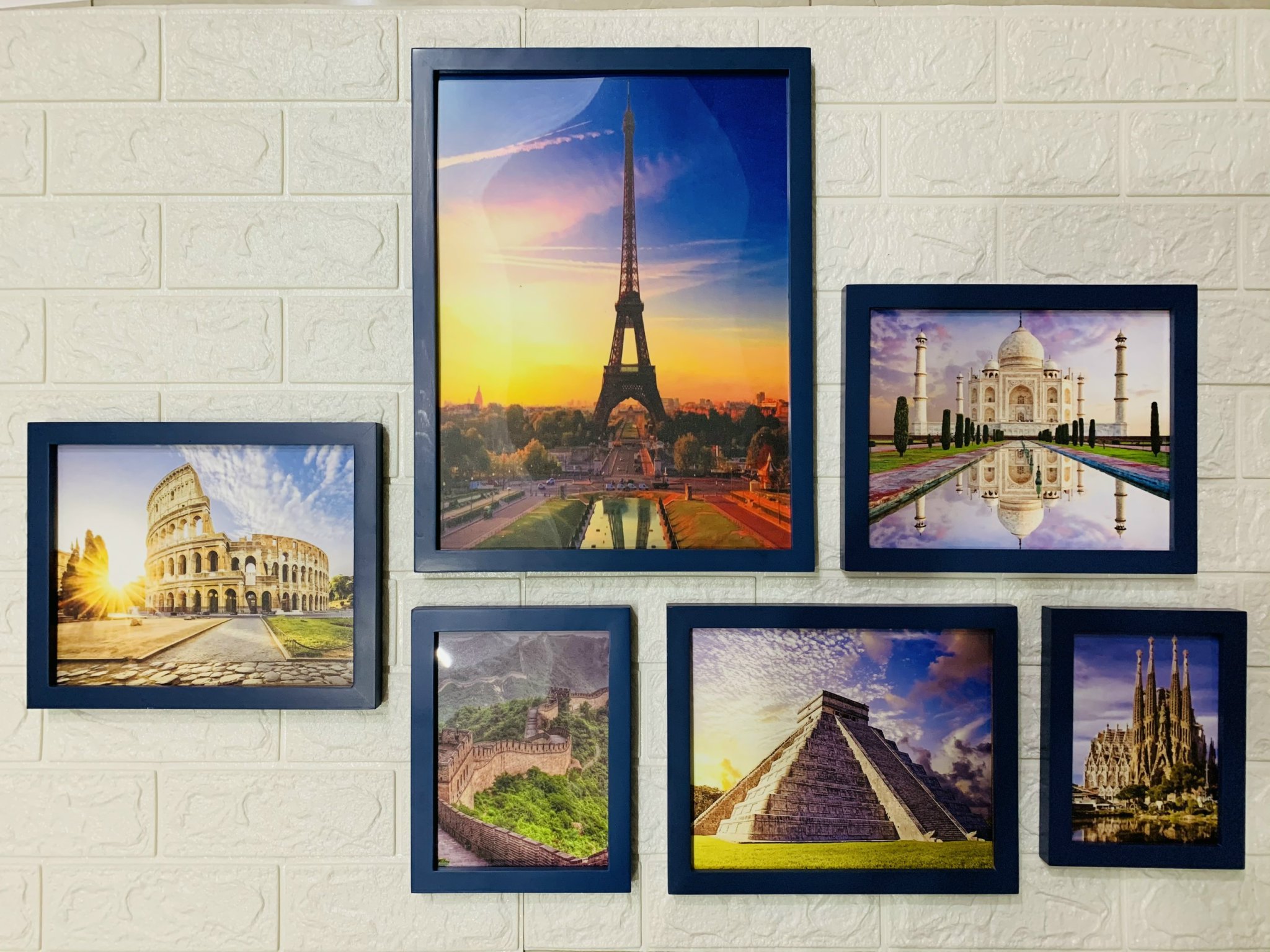 ✨Bộ khung ảnh gỗ thông xanh Navy kì quan thế giới 9 BINBIN KAT143/Tặng đinh 3 chân