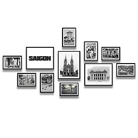 Kích Thước Bộ Khung gồm: 3 khung 20x25cm, 8 khung 13x18cm (Tổng sau khi treo khoảng 145x70cm)