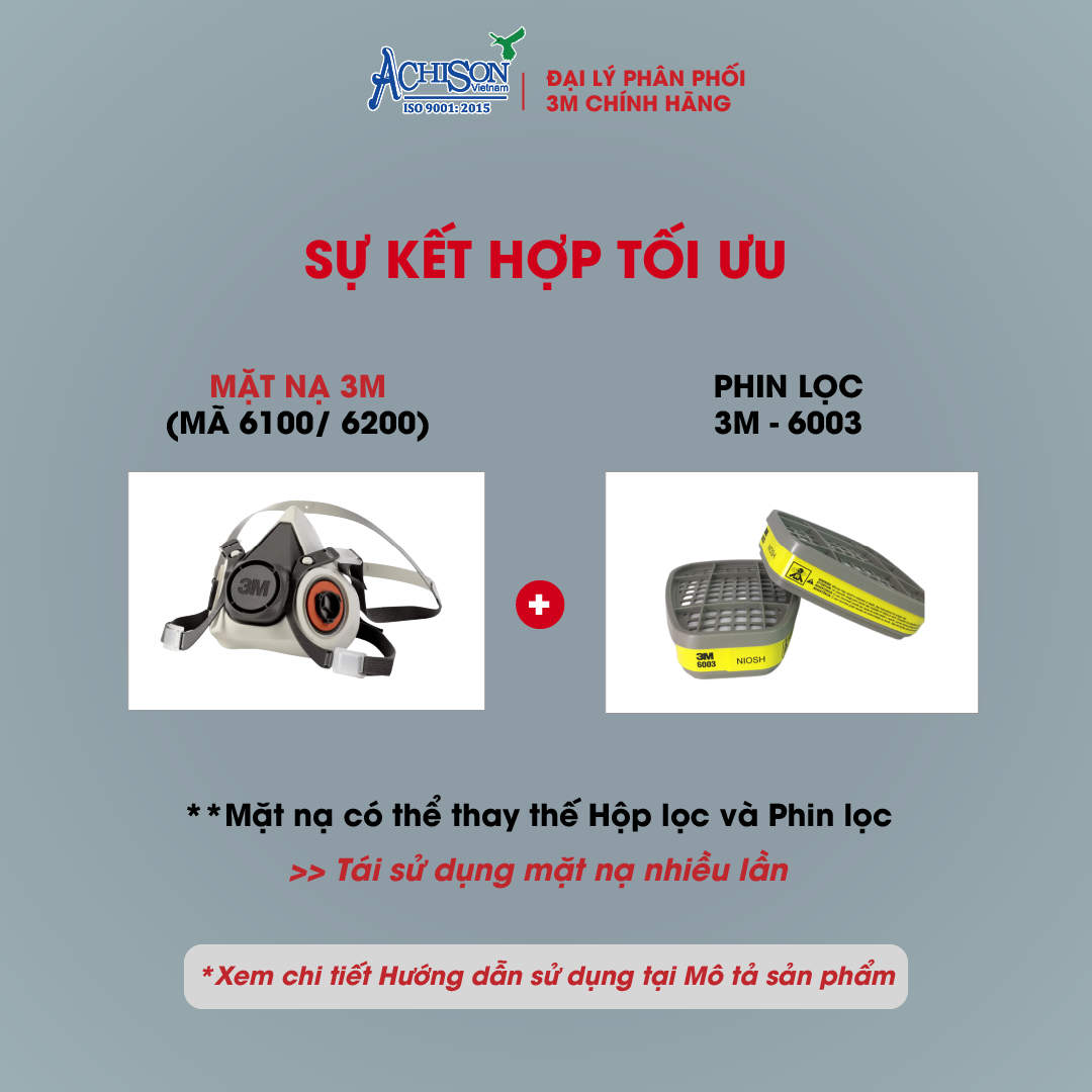 Bộ mặt nạ chống hóa chất 3M 6100/6200 + Phin lọc 3M 6003 - mặt nạ bảo vệ hô hấp Sản phẩm chính hãng 100% được phân phối bởi BHLD ECO ️ Bộ mặt nạ