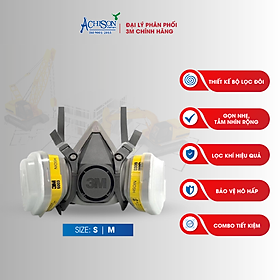 Bộ mặt nạ chống hóa chất, dùng phun thuốc trừ sâu - Mặt nạ nửa mặt 3M 6100/ 6200 + phin lọc - Hàng chính hãng 100% Thương Hiệu: 3M Mã Sản Phẩm: 6100 (Size s) /