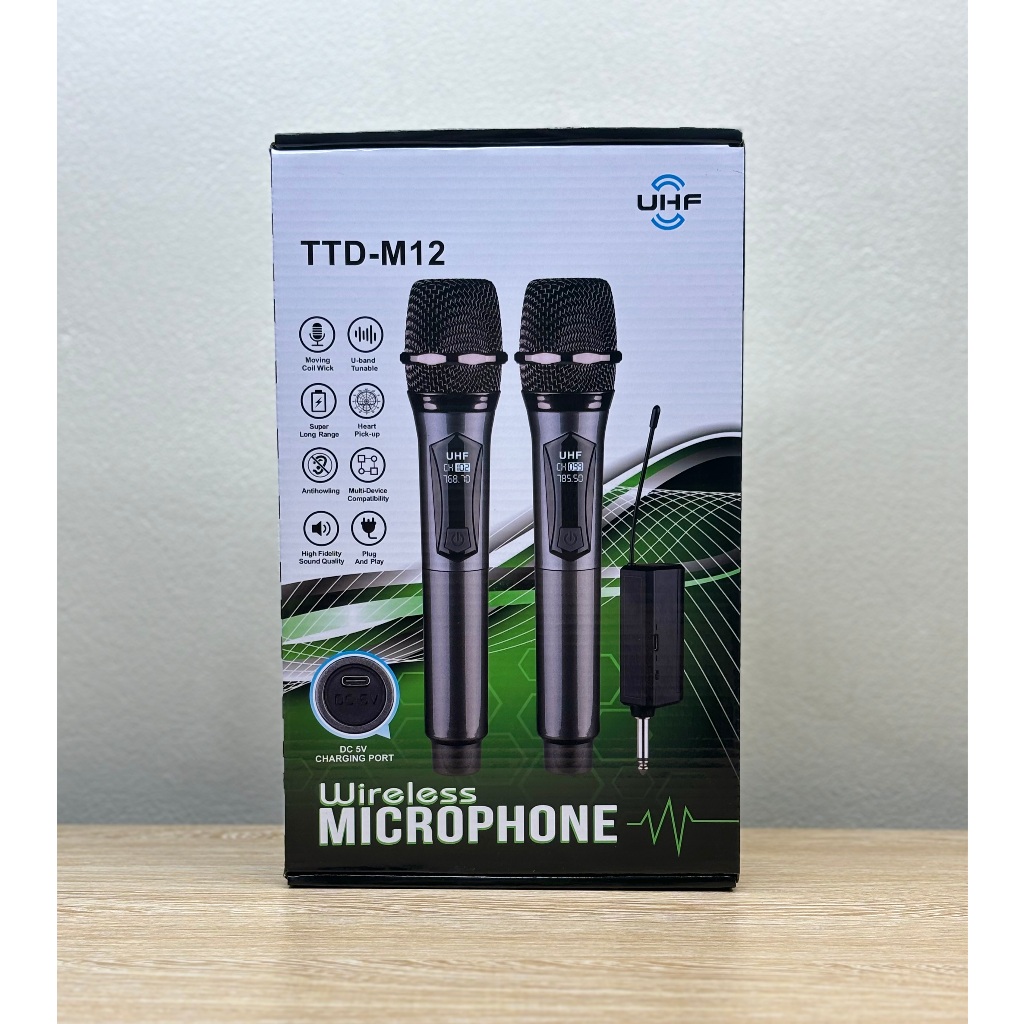 MÔ TẢ SẢN PHẨM ĐẶC ĐIỂM NỔI BẬT : Kiểu dáng hiện đại, trẻ trung, bộ micro không dây TTD-M12 sử dụng mọi dòng loa kết nối hoàn toàn không dây. Sử dụng chất