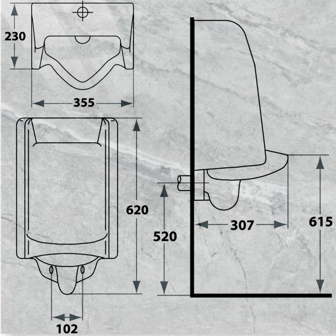 BỒN TIỂU NAM PHÙ HỢP MỌI KHÔNG GIAN PHÒNG TẮM - Kích thước: D x W x H : 307 x 355 x 620mm - Công nghệ sản xuất men sứ Thái Lan càng xài