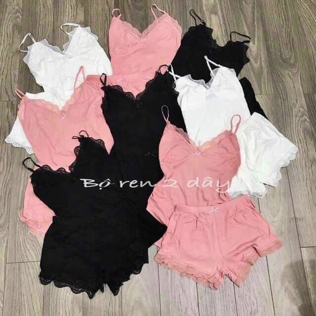 ✨Bộ ngủ nữ hai dây phối ren tăm sexy freesize nhiều màu chất mát