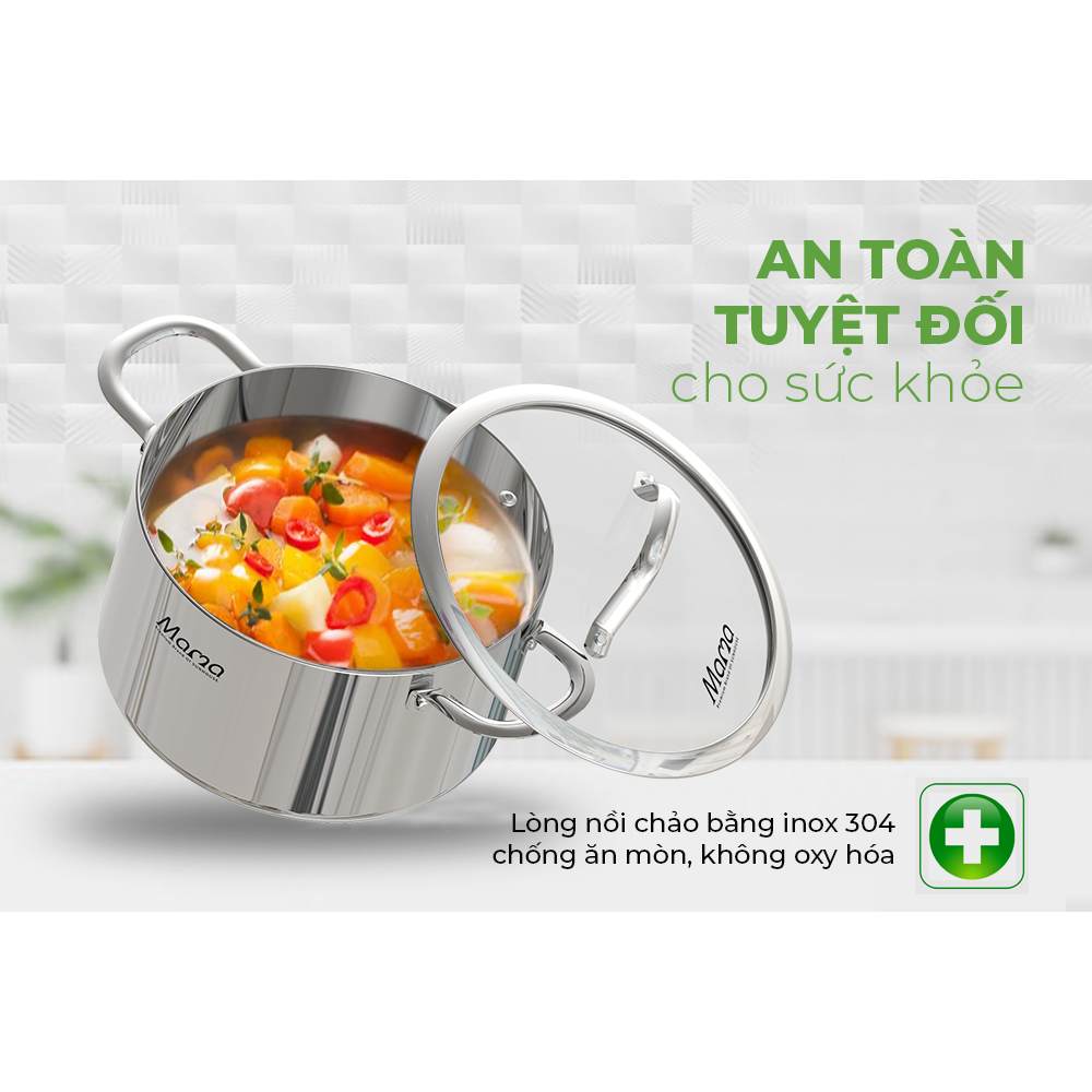 An toàn cho sức khỏe Bộ nồi inox đa lớp Sunhouse Mama SHG701 làm từ chất liệu inox cao cấp, không bị oxy hoá, khả năng chống ăn mòn cực cao giúp bộ nồi có độ bền vượt trội, lòng nồi inox 304 tuyệt đối không độc nên rất an toàn cho sức khoẻ. Bạn hoàn toàn yên tâm sử dụng bộ nồi SUNHOUSE MAMA SHG701 lâu dài để chế biến thật nhiều món ăn ngon cho gia đình.