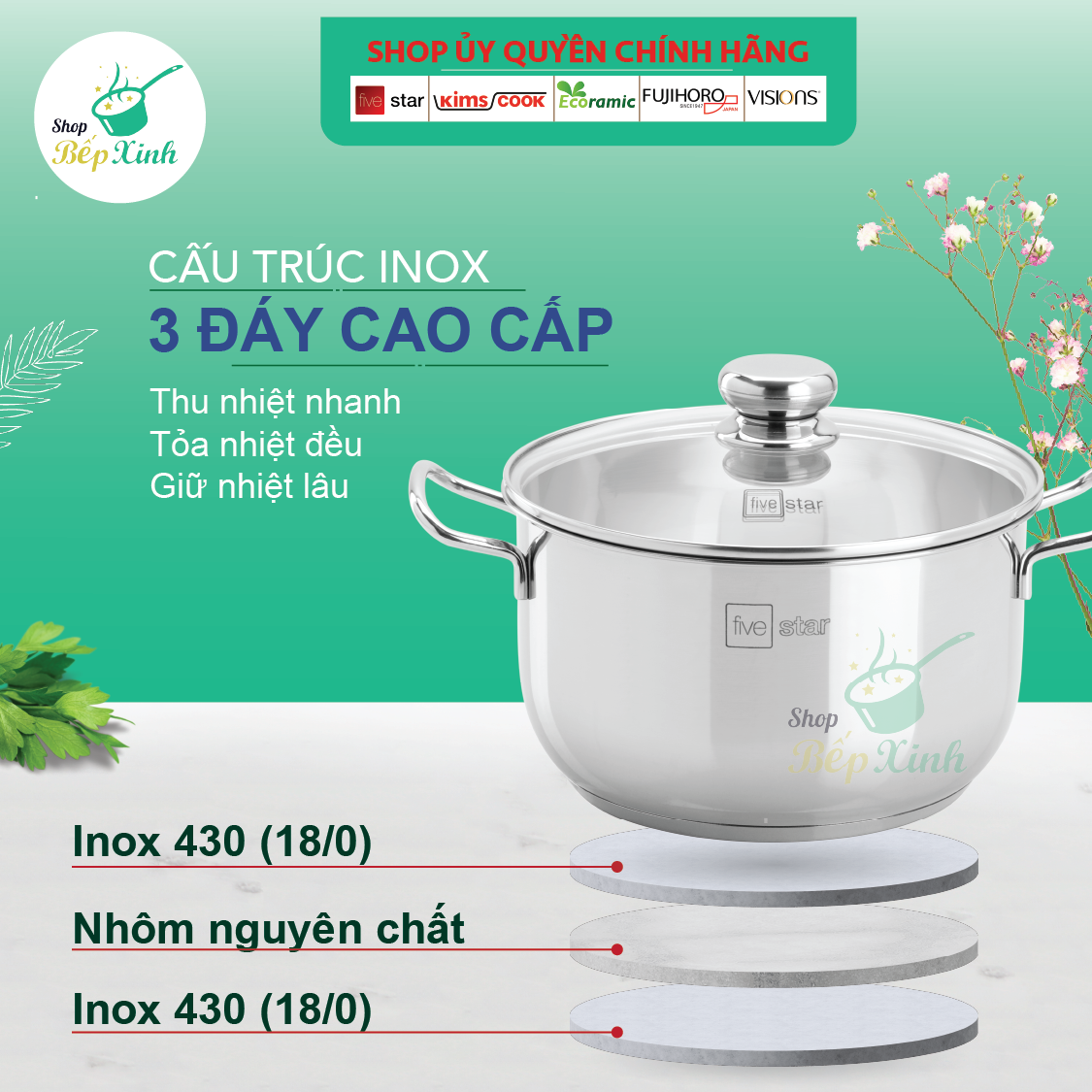 ✨Bộ nồi xửng hấp 3 đáy inox 430 FiveStar Standard nắp kính tặng 1 muỗng canh (24cm /26cm / 28cm /30cm /32cm)