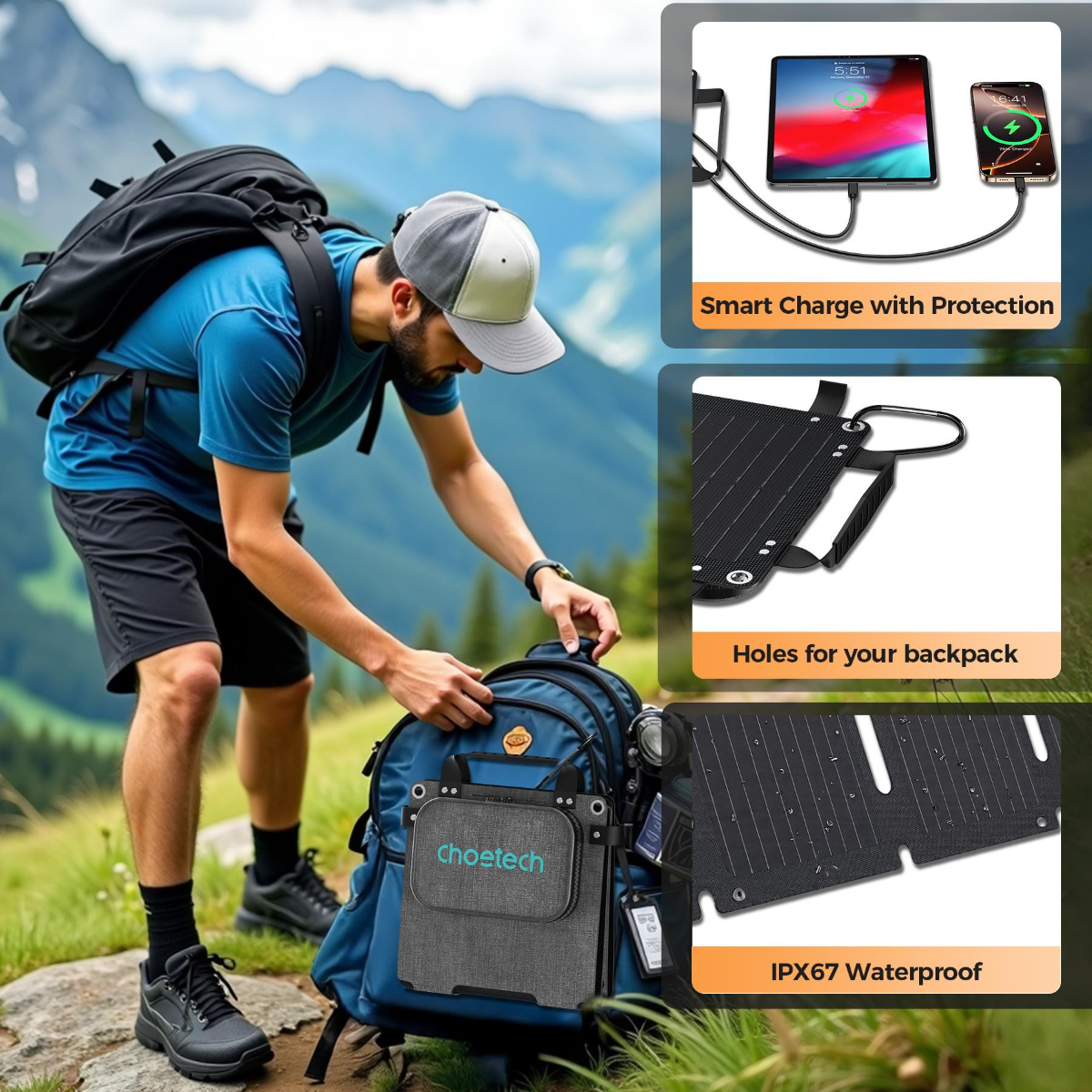 – Sử dụng bộ sạc năng lượng mặt trời Choetech SC005-V5 không chỉ giúp bạn tiết kiệm chi phí mà còn góp phần bảo vệ môi trường. Bộ sạc được thiết kế với vật liệu cao cấp, chống thấm nhẹ và chống bụi, phù hợp với điều kiện thời tiết đa dạng.