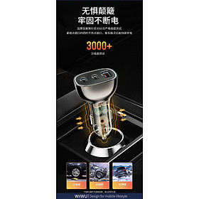 ✨Bộ sạc xe hơi Wiwu 3 In 1 Car Charger Dual USB C + USB A PC700 cho điện thoại sạc nhanh, hỗ trợ sạc 3 cổng một lúc, thiết kế trong suốt - Hàng chính hãng