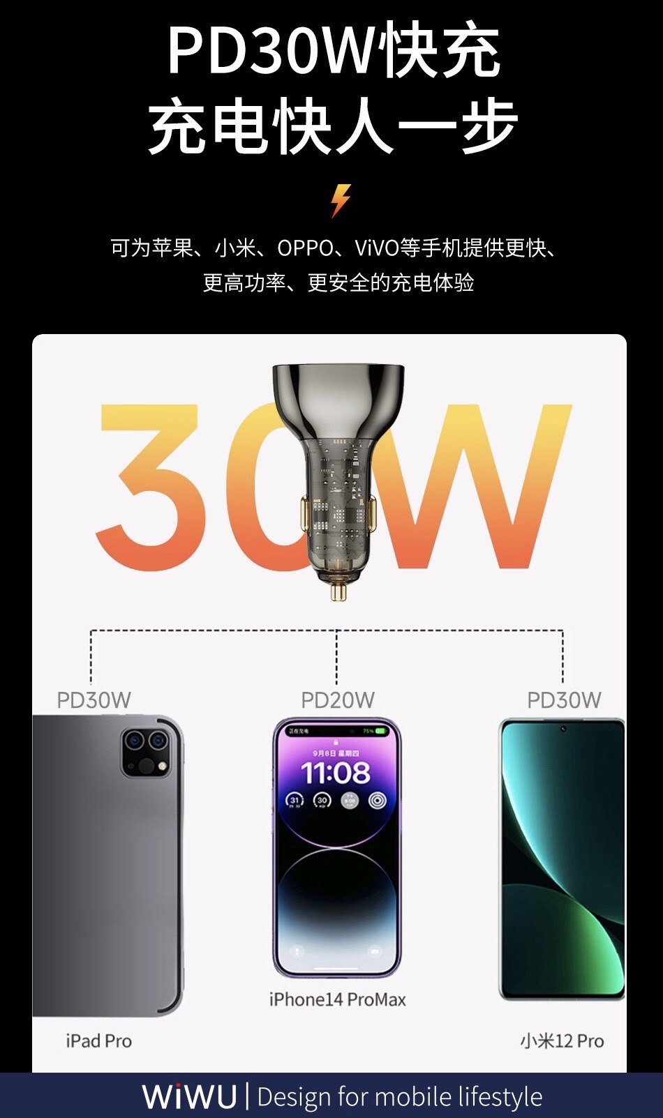 Mua tại TiktokBộ sạc xe hơi Wiwu 3 In 1 Car Charger Dual USB C + USB A Thương hiệu: Chất liệu: ABS + hợp kim kẽm Đầu vào: DC12-24V Đầu ra (USB): 5V 3A/9V-3A/12V-25A ( Tối đa 30W) Đầu ra ( loại C): SV-3A/9V-3A/12V2.5A (Tối đa 30W) Đầu ra (loại C): SV-3A/V-2.22A/12V 1.67A/Tối đa 20W Sạc nhanh PD30W, cung cấp tốc độ nhanh hơn cho , , các điện thoại di động khác Công suất cao hơn, sạc an toàn hơn Sạc 60% trong 30 phút, tốc độ sạc tăng 3,3 lần Sử dụng công nghệ Shunt điều khiển thông minh, hỗ trợ 3 cổng cùng lúc Thiết kế trong suốt và các thành phần được sắp xếp chính xác Không sợ va đập, cung cấp điện liên tục