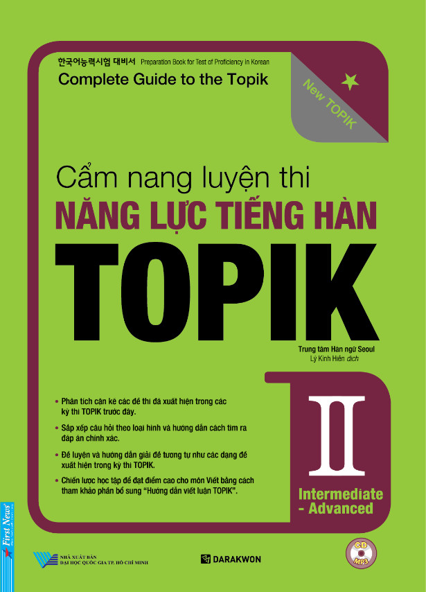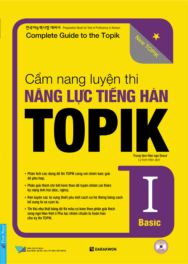 Cẩm nang Luyện thi Năng lực tiếng Hàn TOPIK được biên soạn dành cho người học chuẩn bị tham dự Kỳ thi Năng lực tiếng Hàn. TOPIK I tương ứng với trình độ Sơ cấp, còn TOPIK II tương ứng với trình độ Trung – Cao cấp của kỳ thi tiếng Hàn này.