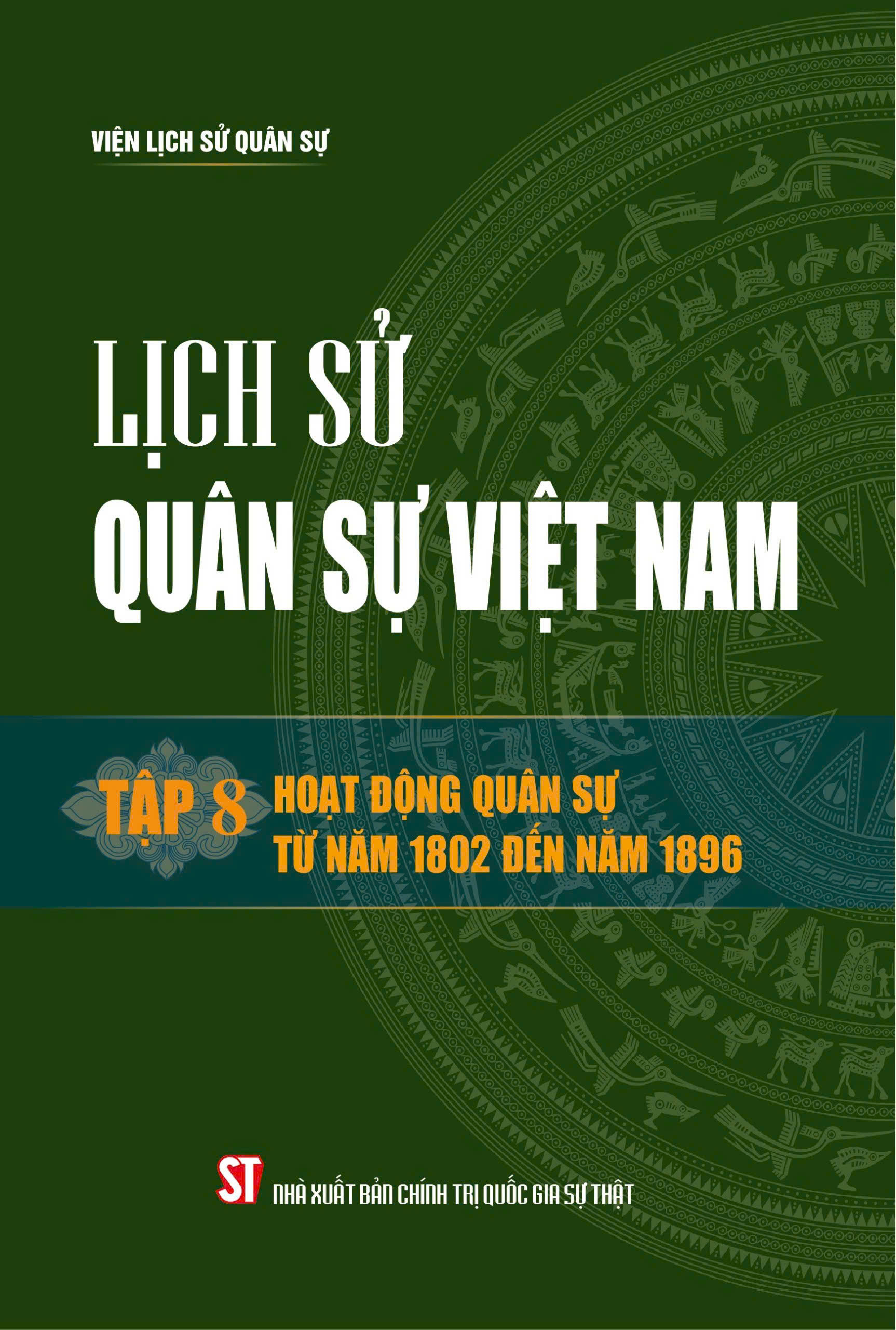 Tập 8: Hoạt động quân sự từ năm 1802 đến năm 1896, giải trình lịch sử quân sự giai đoạn từ đầu thế kỷ XIX đến 1896, tức từ khi triều Nguyễn thành lập đến khi phong trào Cần Vương thất bại. Lịch sử quân sự giai đoạn này bao gồm những hoạt động quân sự dưới triều Nguyễn và phong trào chống thực dân Pháp xâm lược trong nửa cuối thế kỷ XIX ở Việt Nam.