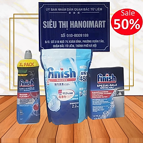 Combo: Viên rửa bát Finish 60 viên + Nước làm bóng finish 800ml cho Máy rửa bát chén là bộ 3 sản phẩm đầy đủ chức năng nhất hiện nay Là combo chất tẩy rửa
