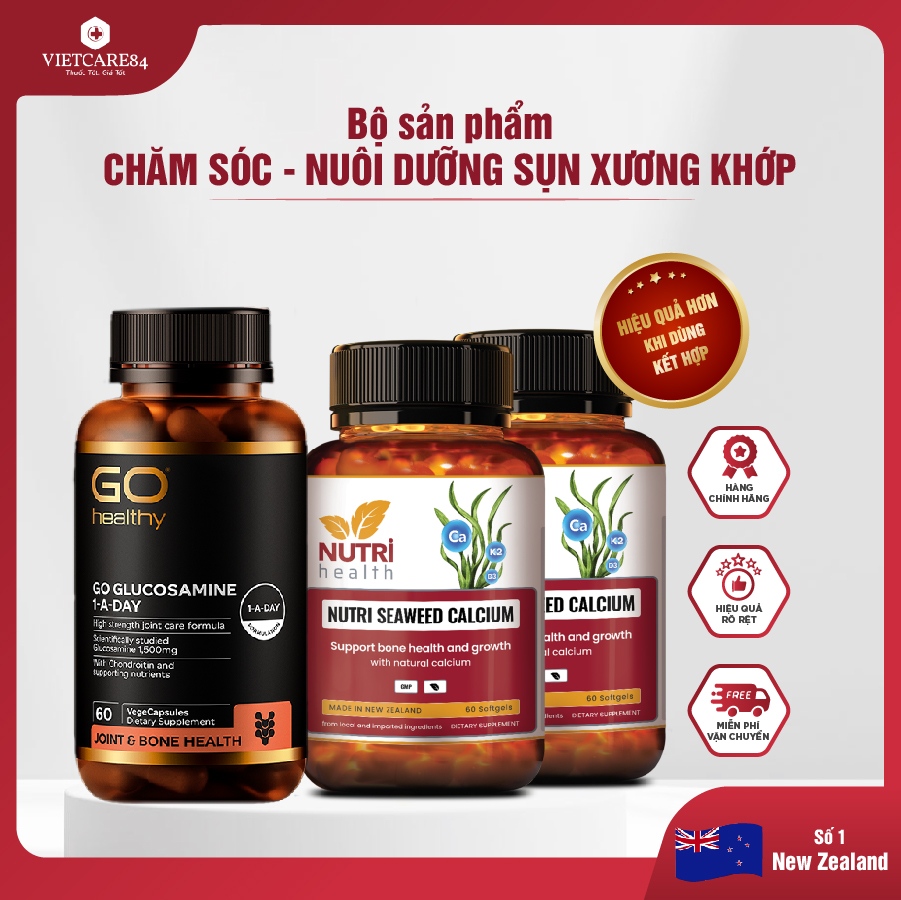 ✨Bộ sản phẩm chăm sóc xương khớp: Viên xương khớp GO GLUCOSAMINE 1-A-DAY ; Canxi hữu cơ New Zealand Nutri Seaweed Calcium