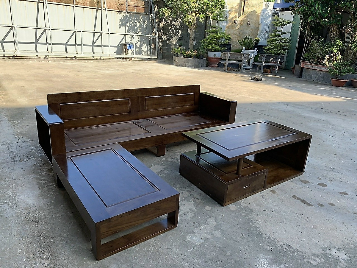 Kích thước: Bộ sofa gỗ sồi 2m3, kèm đôn góc linh hoạt và Bàn trà gỗ