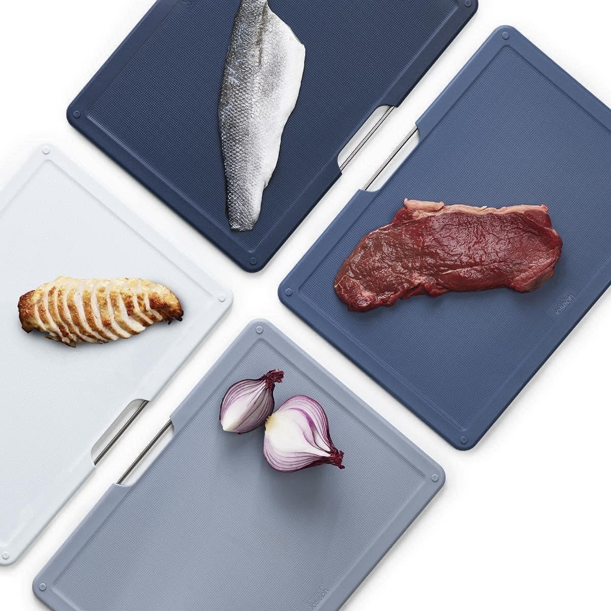 Bộ thớt Joseph Joseph gồm 4 tấm thớt bằng nhựa tổng hợp siêu nhẹ, siêu mỏng. giải quyết những vấn đề khó khăn mà các bà nội trợ thường xuyên gặp phải .