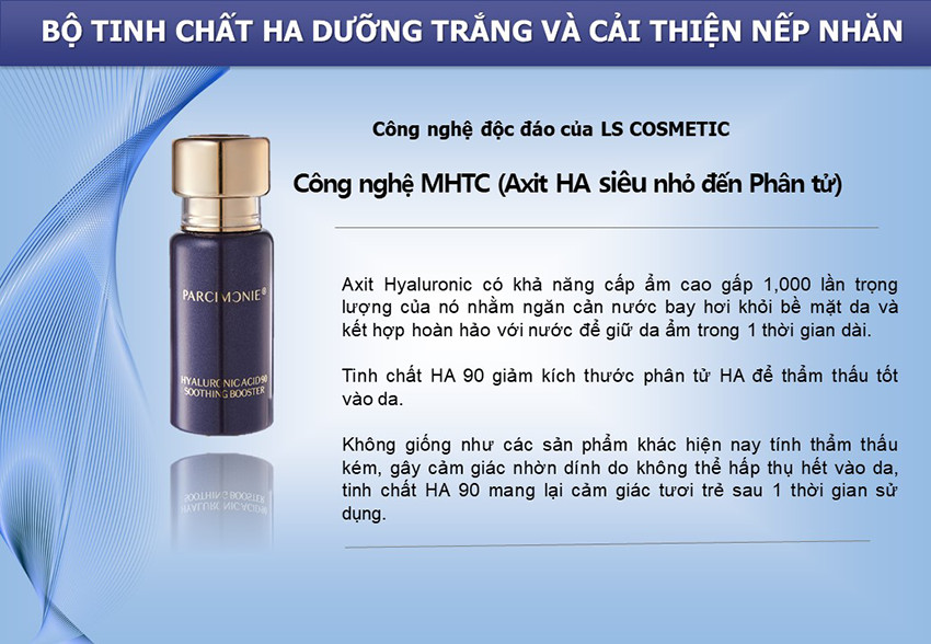 Với Parcimonie Hyaluronic Acid 90 Soothing Booster có tác dụng hiệu quả trong việc dưỡng trắng da an toàn và phù hợp với mọi loại da đồng thời nuôi dưỡng làn da khỏe mạnh, tăng độ đàn hồi và giúp da tràn đầy sức sống và cải thiện nhanh chống tình trạng khô da.