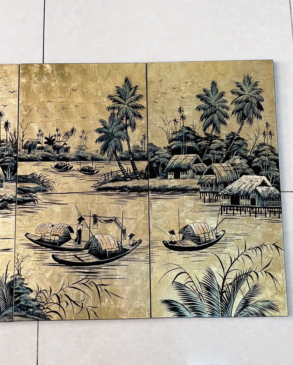 ✨Bộ Tranh sơn mài - ĐỒNG QUÊ VIỆT NAM - Size 60x120 cm - Nền dát vàng cao cấp