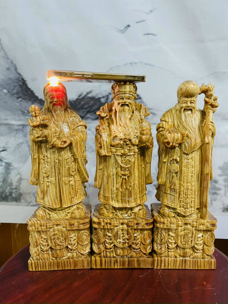 Báo giá cả lô tượng Tam Đa Phúc Lộc Thọ từ gỗ bách xanh, ngọc am, hương, trắc dây, huyết long …