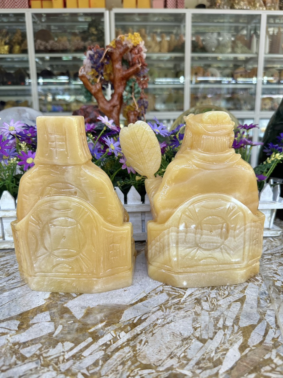 ✨Bộ tượng thờ hai ông Tài Địa Thần Tài Thổ Địa đá ngọc hoàng long - Cao 20 cm