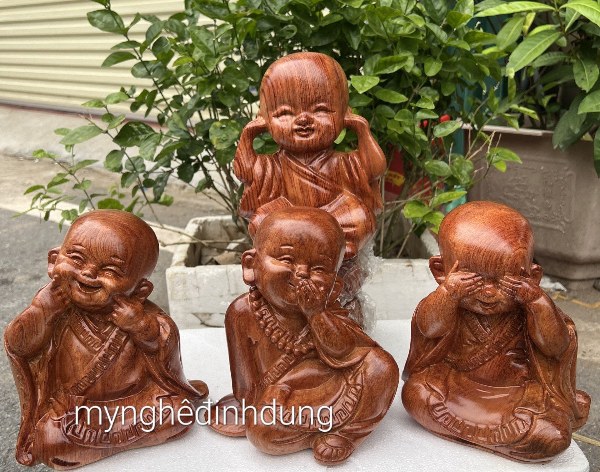 Bộ tượng tứ không gỗ bách xanh - không nhìn - không nói - không nghe -không làm điều xấu