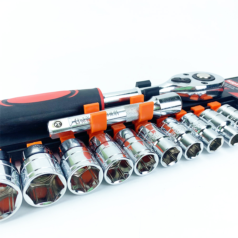 - Vật liệu molypden mạ crôm đen tráng cứng. - Cờ lê ổ cắm cho vít lục giác. - 10, 11,12, 13,14, 15, 16, 17, 19, 21 mm