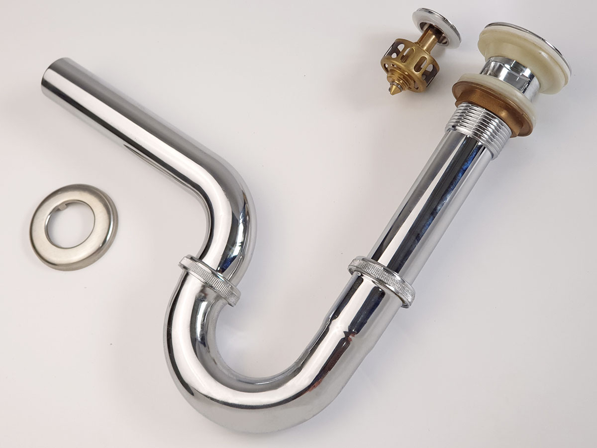 - Chất liệu : Nắp bộ xả được làm từ Đồng mạ Chrome sáng bóng. Ống chữ P được làm từ Inox