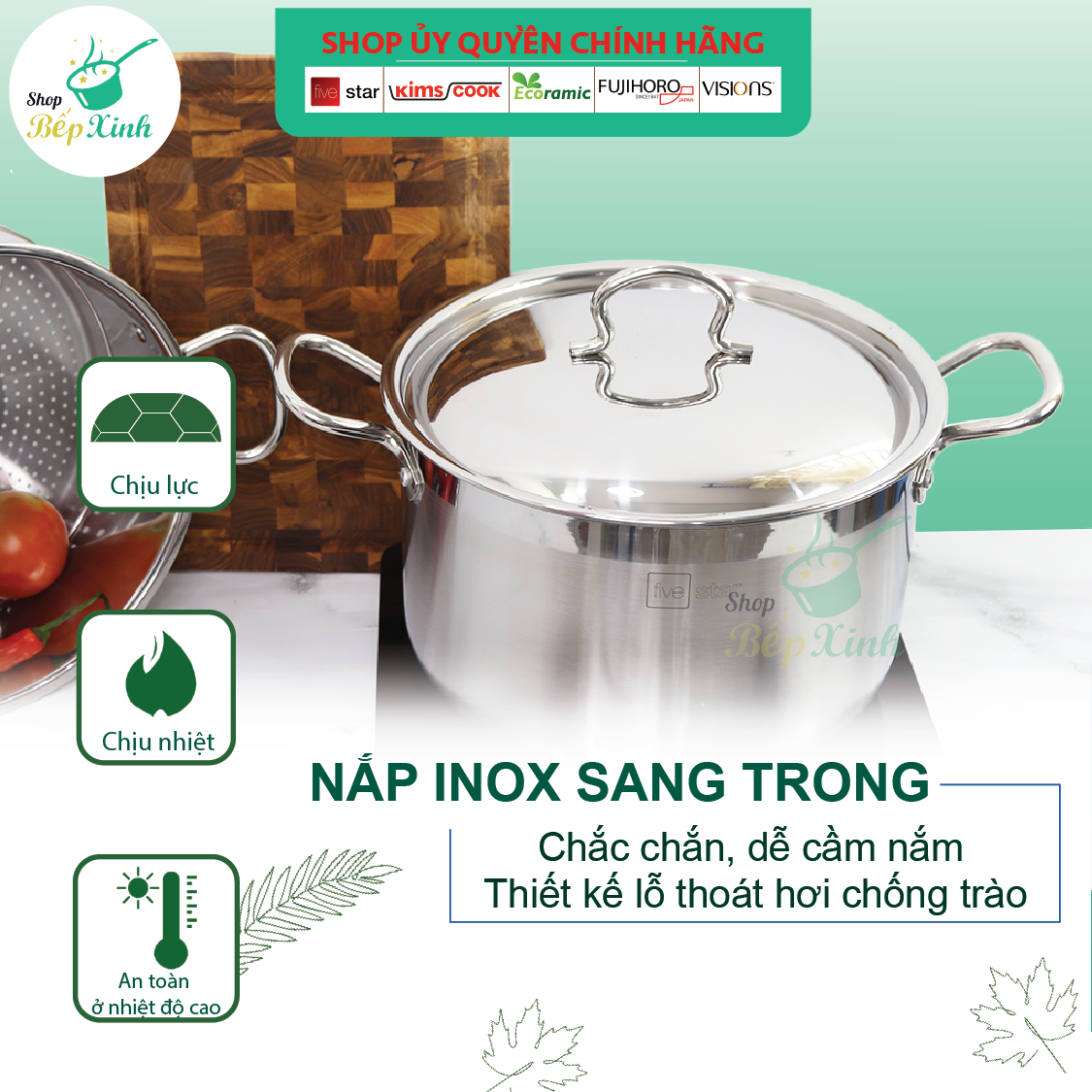 Bộ nồi xửng hấp Inox 3 đáy Fivestar 30cm bền đẹp, bảo hành 5 năm chuẩn hàng Việt Nam chất lượng cao