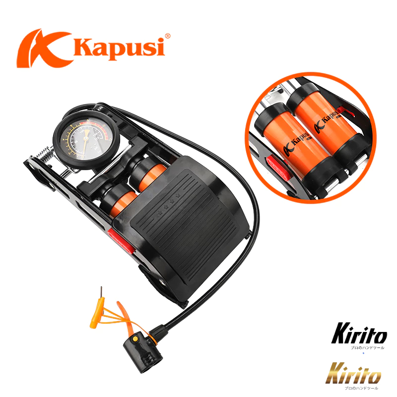 Bơm Hơi Đạp Chân 2 Piston Mini Đa Năng Bơm Xe Máy Oto Siêu Khỏe Bơm Kapusi Đài Loan