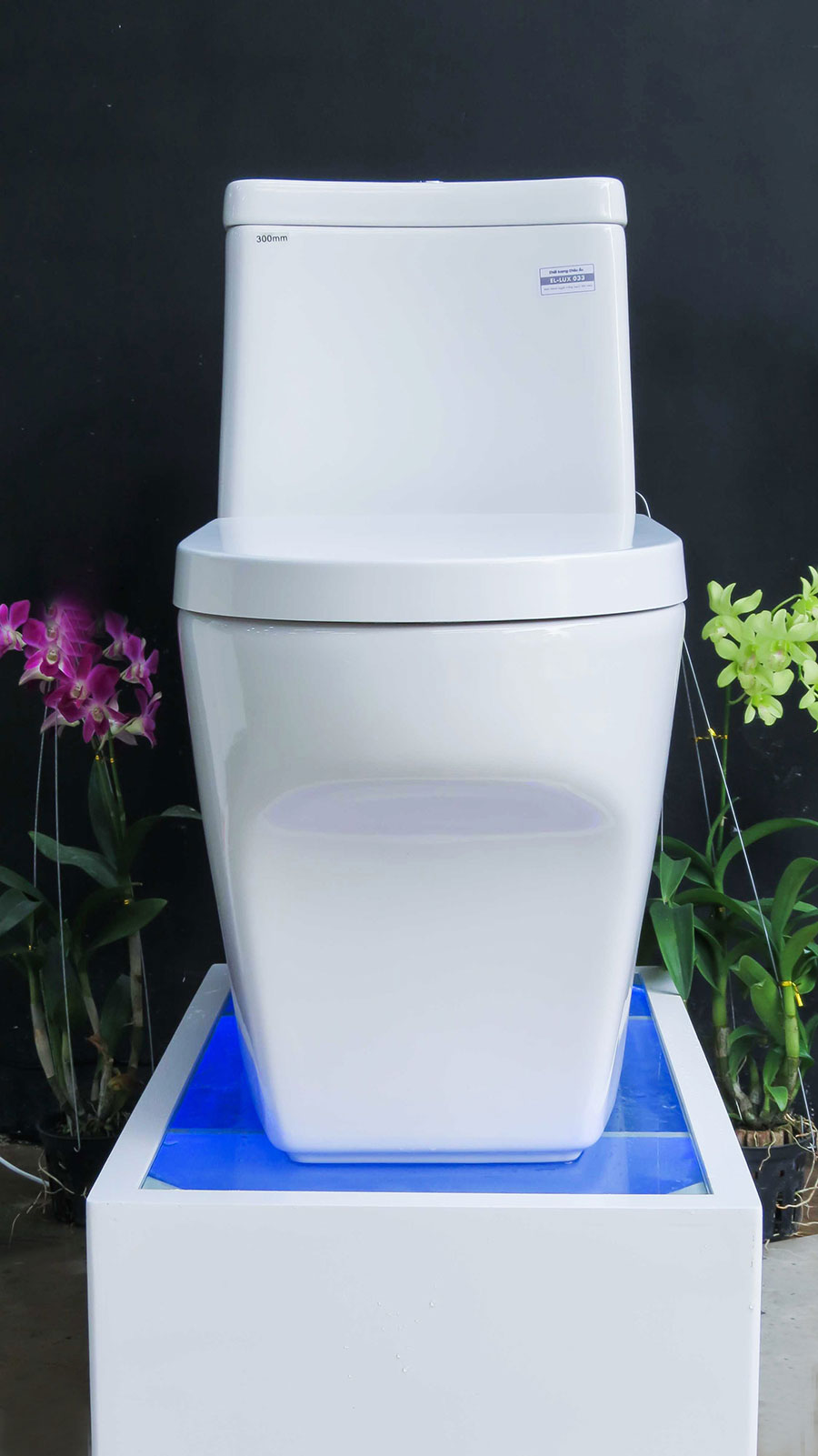 Bồn cầu được thiết kế vuông, khỏe khoắn, tạo lên sự sang trọng cho phòng vệ sinh.