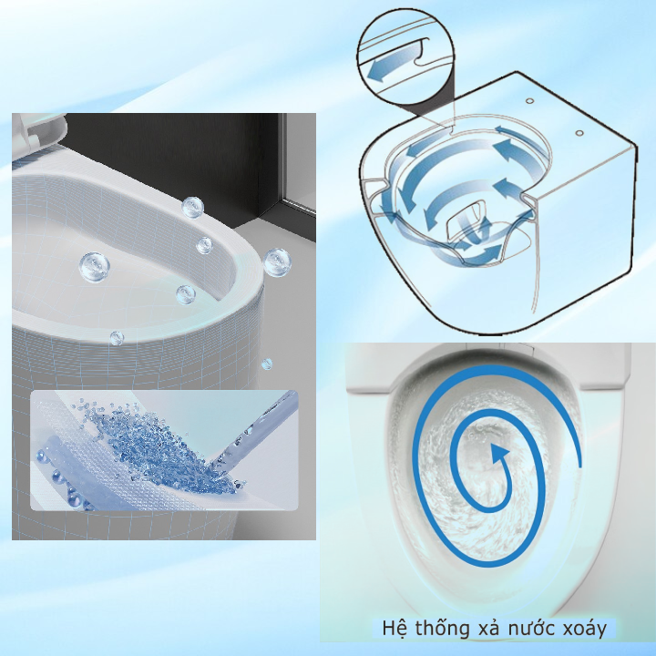 - Áp dụng công nghệ xả xoáy đẩy mạnh mẽ cuốn trôi nhanh mọi vết bẩn chỉ trong 1 lần xả, tiết kiệm nước tối ưu.