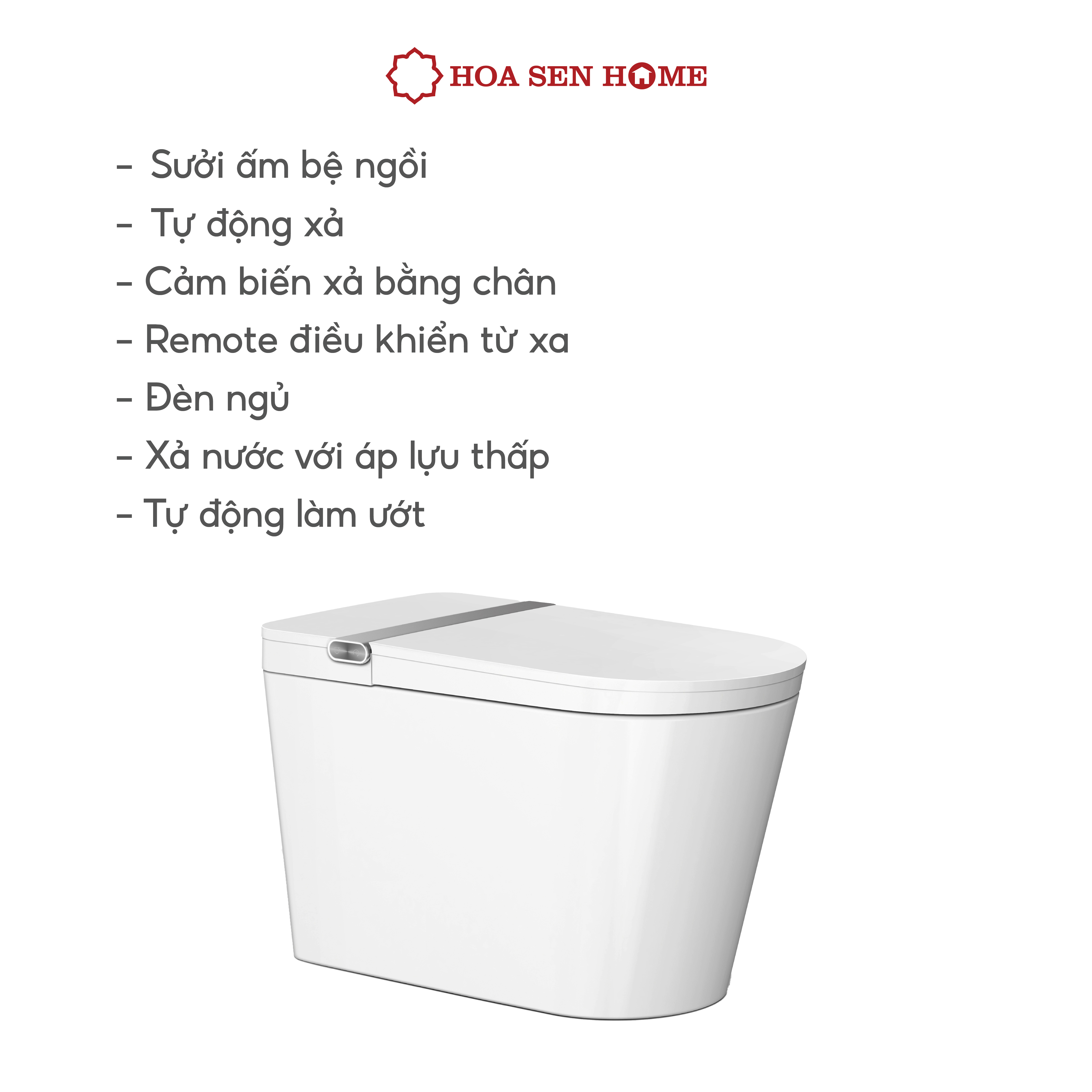 Xả nước tự động: Bồn cầu tự động xả nước sau khi người dùng rời đi, không phụ thuộc vào áp lực nước, giúp tiết kiệm thời gian và mang lại sự tiện nghi tối đa.