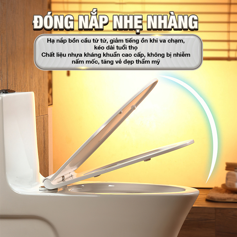 Chất liệu: Sứ Nắp bồn cầu chất liệu nhựa UF cao cấp Màu sắc: trắng sáng Thiết kế: liền khối, mềm mại, giúp tạo sự liền mạch cho không gian Bề mặt sứ tráng men