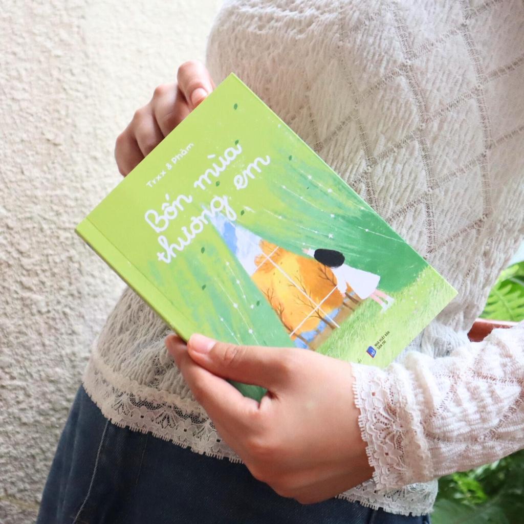 Mua tại TiktokBốn mùa thương em Thương bóng hình của một cô gái từng vùng vẫy ở thành phố chật chội. Thương cả những chuyến xe dài trở về nhà với đầy ắp tiếng lòng. Thương cả con đường sau mưa mùa hạ, những đêm dài thức trắng cô đơn ở lòng thành phố. Thương một thanh xuân rực rỡ, nơi có những đam mê cháy bỏng, những người bạn, và cả người mình từng thương. Và thương cả em - cô gái nhỏ vẫn đang hàng ngày dùng trái tim lương thiện để đối diện với một thế giới vốn đầy giông bão. “Bốn mùa thương em” là cuốn tản văn về hành trình đi tìm lại hạnh phúc từ những điều bình dị nhất. Dưới sự kết hợp đầy duyên dáng của hai tác giả trẻ Trxx và Phàm, hạnh phúc được mở ra như một cơn gió, không thể nhìn thấy được, cũng không tồn tại mãi mãi được, chỉ có thể cảm nhận trong chốc lát. Hạnh phúc có thể đến từ bất kỳ đâu cả vào những lúc ta không ngờ nhất, chỉ mong rằng, khi nhận ra, ta đủ trân trọng và giữ gìn. Như cơn gió xuân nhẹ nhàng, như sức sống mùa hạ, như bầu trời xanh dịu mùa thu và như cái đan tay ấm áp giữa trời đông, “Bốn mùa thương em” sẽ ở bên bạn, thì thầm rằng mỗi ngày trôi qua, ngày nào với bạn cũng là ngày đẹp trời. Và hãy luôn là chính mình, chân thành yêu thương và tự do đón nhận những điều tươi đẹp: “Có mùa xuân vẫn ươm tình trong em Ôm ngày hè vấn vương đầy nỗi nhớ Nhẹ nhàng thu, lắng nghe mình, cùng thở Thương mùa đông, dịu dàng với cô đơn Chở che ta, muôn vàn những tủi hờn Dù ai có ra đi thì ngoài kia vẫn sống chim vẫn hát hoa vẫn nở, bốn mùa vẫn yêu em.”