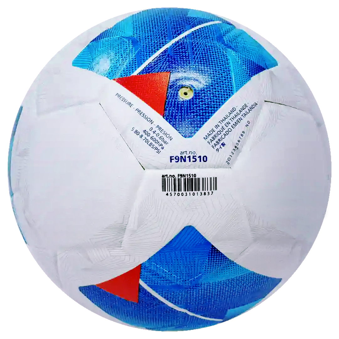 Tiêu chuẩn FIFA Quality Mã sản phẩm: F9N3555 Size: F Số miếng ghép: 32 Màu: Trắng – Xanh – Cam Sản xuất tại: Pakistan Chất liệu: Da PU đặc biệt Ruột bóng: Latex Công nghệ: