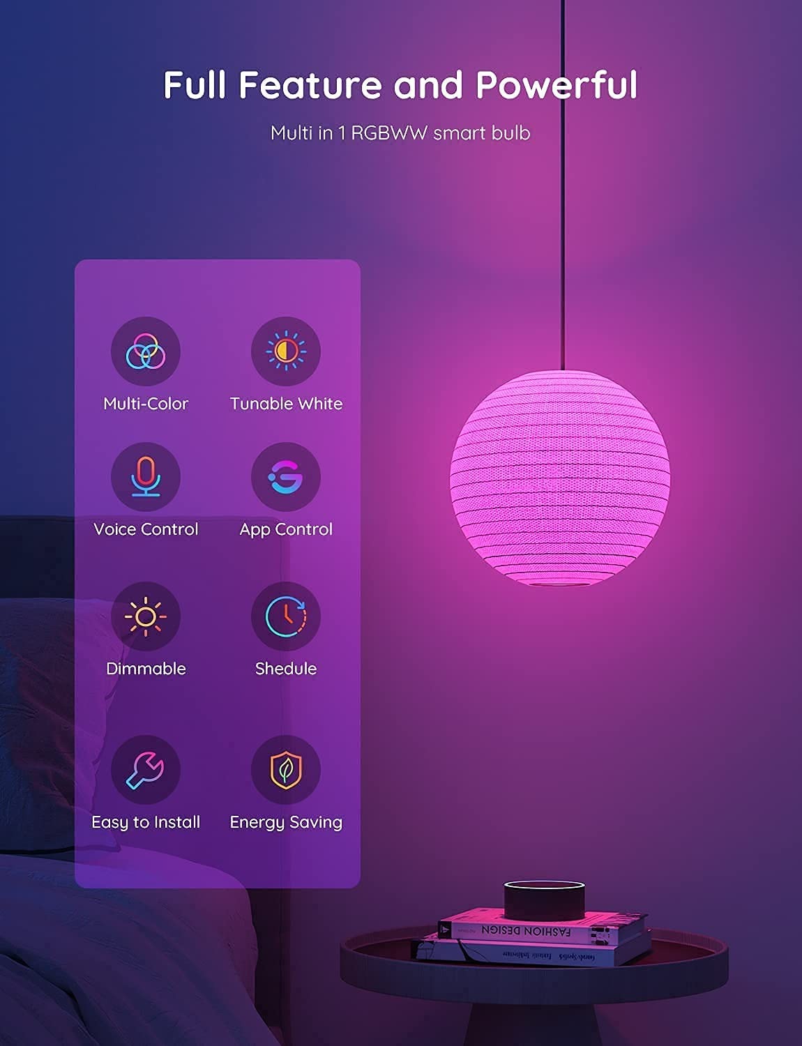 - Tương thích Google Assistant, Amazon Alexa, Siri Shortcut… - Ánh sáng Vàng ấm sang Trắng Sáng và 16 Triệu màu 2200K-6500K - Công suất 9W 810lm 220-240V CRI 90 - Đui bóng E27 dễ dàng lắp