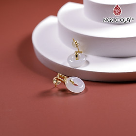 Đôi bông tai đá cẩm thạch trắng tự nhiên đẹp Size đk 15mm x dầy 3mm Nữ về bọc làm đôi bông tai vàng đeo đẹp ạ Mệnh Kim Thủy hợp ạ Chất liệu đá